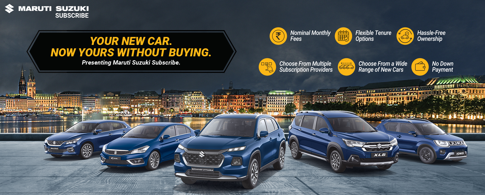 Located in Panipat, RKH Automobiles offers a plethora of options of Nexa cars for Maruti Suzuki Subscribe. You can choose your desired Maruti Suzuki car and drive it home at nominal monthly fees for a variety of flexible tenure periods. Whether you prefer Hatchback, Sedan, SUV or even MUV you are sure to find it at RKH Automobiles, Nangal Kheri with an easy Maruti Suzuki Subscribe plan.